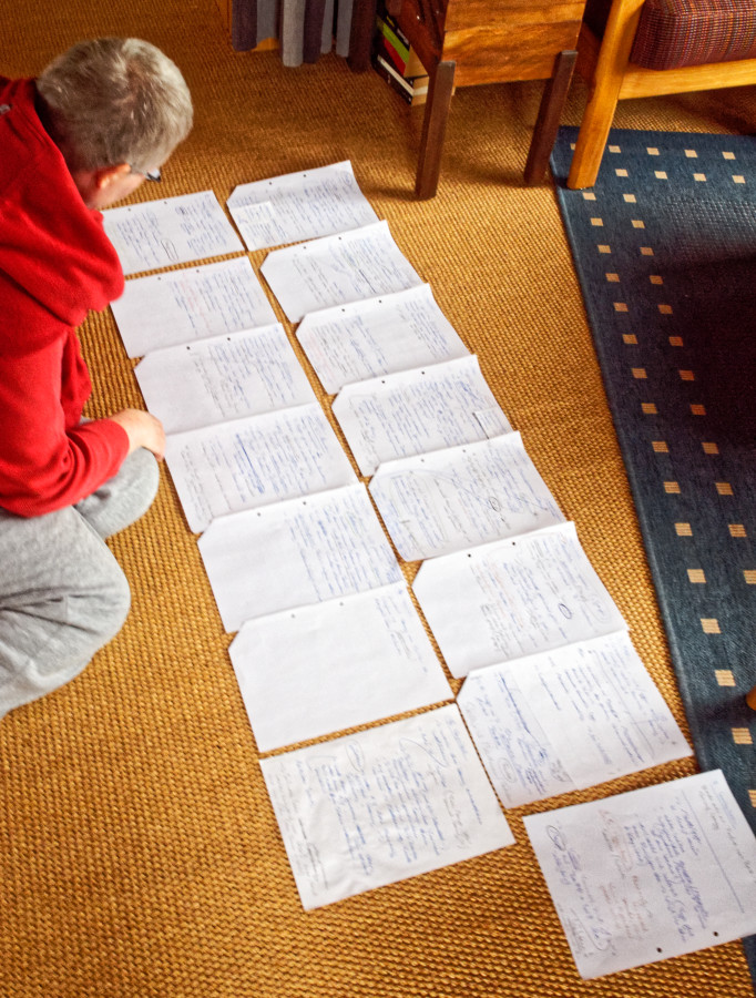 Wie das geschulte Auge unschwer erkennt, handelt es sich hier um die Autorin nebst bzw. vor der Kapiteleinteilung für den neuen Hanna-Hemlokk-Roman. Sechzehn soll(t)en es werden - und sind es inzwischen auch geworden. Jetzt gilt es also nur noch, diese Blätter in gut dreihundert Seiten Text umzuwandeln. Aber nachdem in diesem Herbst schon Hanna 8 erscheint - diese erfreuliche Tatsache kann gar nicht oft genug erwähnt werden -, schreckt das überhaupt nicht mehr.