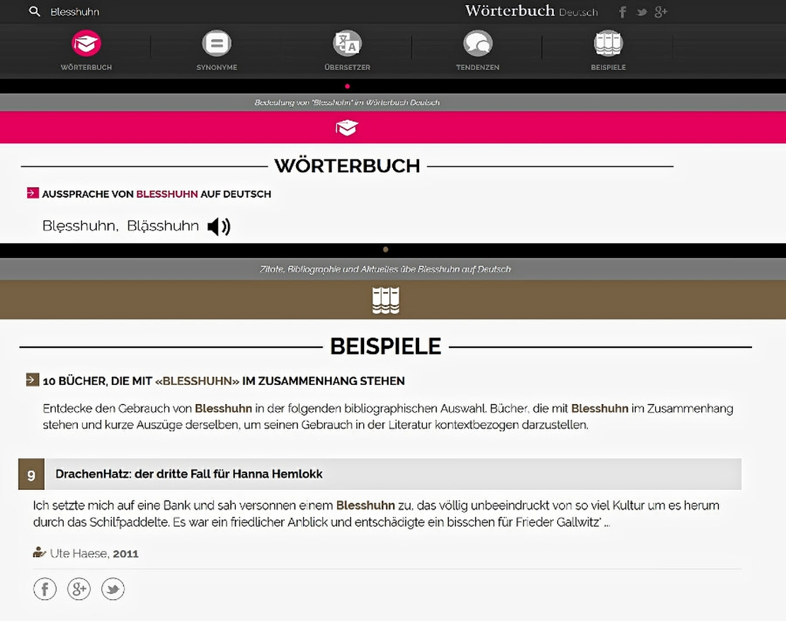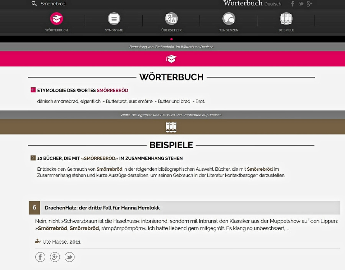 Allerdings - das hätte ich auch nicht für möglich gehalten, dass Hanna Hemlokks dritter Fall "DrachenHatz" in einem Online-Wörterbuch als "kontextbezogene Literatur" gleich zweimal zur Erläuterung solch zentraler Begriffe wie "Smörrebröd" und "Blesshuhn" benutzt wird ...