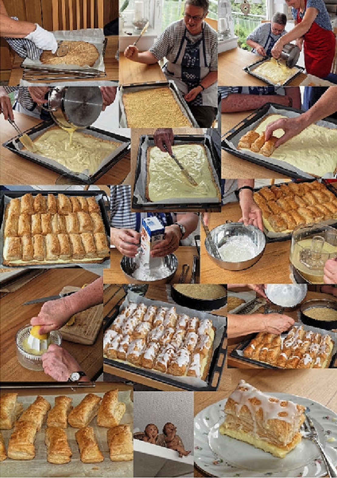Weil jedoch der Bäcker Matulke, und das ist nun die bittere Enthüllung, meiner Fantasie entsprungen ist, gilt es, das schmackhafte Backwerk selbst zu produzieren. Aber damit trotzdem noch ein bisschen Spannung für alle Teilnehmer/innen erhalten bleibt: Die Cremeschnitten auf der Fahrt werden etwas anders aussehen.