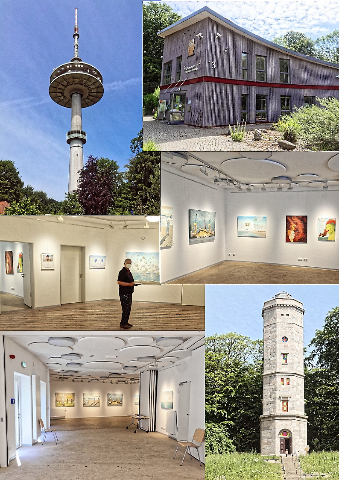 Eine letzte Vorbesichtigung vor der Aufhängung unserer hier schon kurz angekündigten Ausstellung "Es ist ein Baum und weiter nichts ..." hat uns nun noch einmal auf den höchsten Punkt des Landes, den Bungsberg, geführt. 167,4 Meter über dem Meeresspiegel werden wir dort also im Rahmen der Sparkassen Kulturstiftung-Ostholstein vom 8. Juli bis zum 26. September - Vernissage am 7. Juli um 18 Uhr - unsere erfreulicherweise bisher ausnahmslos gut aufgenommenen (doppeldeutig!) Baumbilder zeigen. Auf dass viele Interessierte den Aufstieg machen werden - der aber natürlich jederzeit auch mit dem Auto erfolgen kann.
