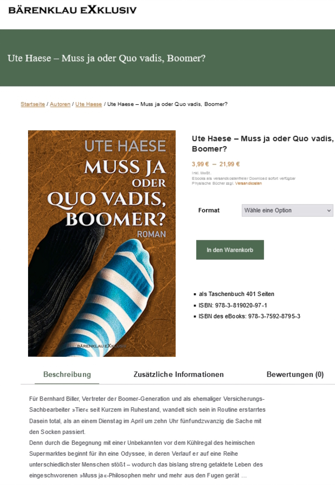 Und auch wenn Bernhard Biller diese vertrauliche Umgangsform sicherlich etwas skeptisch betrachten würde, besteht nun die Chance, ihn auf seiner Odyssee durch eine für ihn doch sehr verwirrende Welt zu begleiten - ab sofort als eBook und in Kürze auch als Printexemplar.