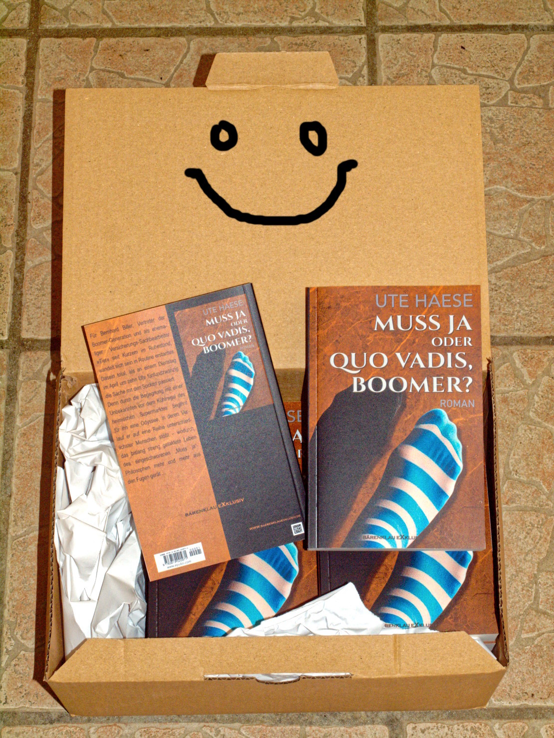 Und in denen - Tusch! - befanden sich die ersten "Muss ja"-Exemplare, die nun auf ihren Einsatz bei der Premierenlesung am 14. Februar im Schönberger Kulturhaus "Alte Apotheke" warten. Und wem das zu lange dauert, der klickt zum Beispiel einfach hier den Karton an und landet sofort auf der Bärenklau-Verlagsbestellseite, wo es das Prachtwerk wie auch bei den meisten (Buchhandlungs-)Plattformen wahlweise als eBook oder Printausgabe gibt.