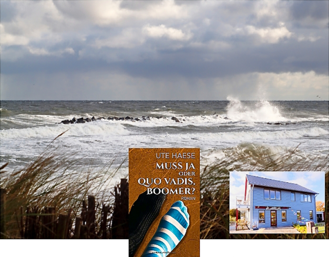 Sich erst bei einem ausgiebigen Spaziergang am Schönberger Strand den Kopf durchpusten zu lassen, um anschließend mit aufnahmefähigem frischen Geist bei einem guten Buch zu entspannen. Und dafür kriegt man jetzt - wer hätte das gedacht? - das hier schon gelegentlich erwähnte Prachtwerk "Muss ja oder Quo vadis Boomer?" direkt vor Ort bei "Schmuckstücke & Mehr", Promenade 37, wo eventuell zusätzlich die eine oder andere Preziose lockt. Da lohnt sich dann ein Besuch gleich in doppelter bzw. sogar in dreifacher Hinsicht, denn in der dazugehörigen Galerie gibt es zur Zeit auch noch Bilder von "Herzfarbenrausch" zu begucken.