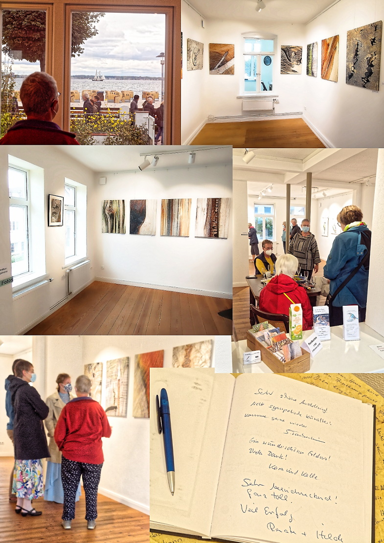 Bei diesen ersten Gästebuch-Eintragungen schon in den ersten Stunden können wir mit dem Start unserer Doppelausstellung zusammen mit Hauke Kruse mehr als zufrieden sein. Über 200 zumeist wirklich Interessierte fanden am zurückliegenden Wochenende den Weg ins Laboer Freya-Frahm-Haus und waren überwiegend echt begeistert von den Haese/Prawitt-Baumstruktur-Fotografien und den Kruse-Vogel-Aquarellen, die auch wirklich prachtvoll miteinander harmonieren. Nun hoffen wir alle drei bis zum 3. Oktober auf einen weiterhin ungebremsten Andrang. Denn die Bilder haben es auf jeden Fall verdient, und an unserer sympathischen Ausstrahlung soll es ebenfalls nicht mangeln!
