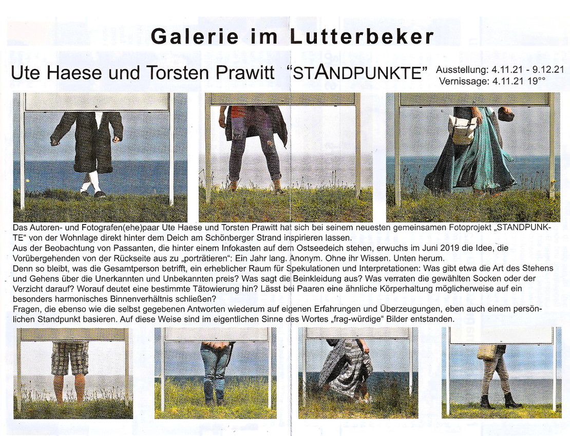 Nach einem leider viel zu kurzen Kurzurlaub im nicht nur pilzmäßig großartigen Wendland starten nun die letzten Vorbereitungen für unsere neue Ausstellung im "Lutterbeker". Diesmal geht es nicht um Bäume, sondern um Beine. "StAndpunkte" beginnt am 4. November mit der Vernissage um 19:00 Uhr in der Galerie und kann zu den normalen Öffnungszeiten des Lokals bis zum 9. Dezember besichtigt werden.