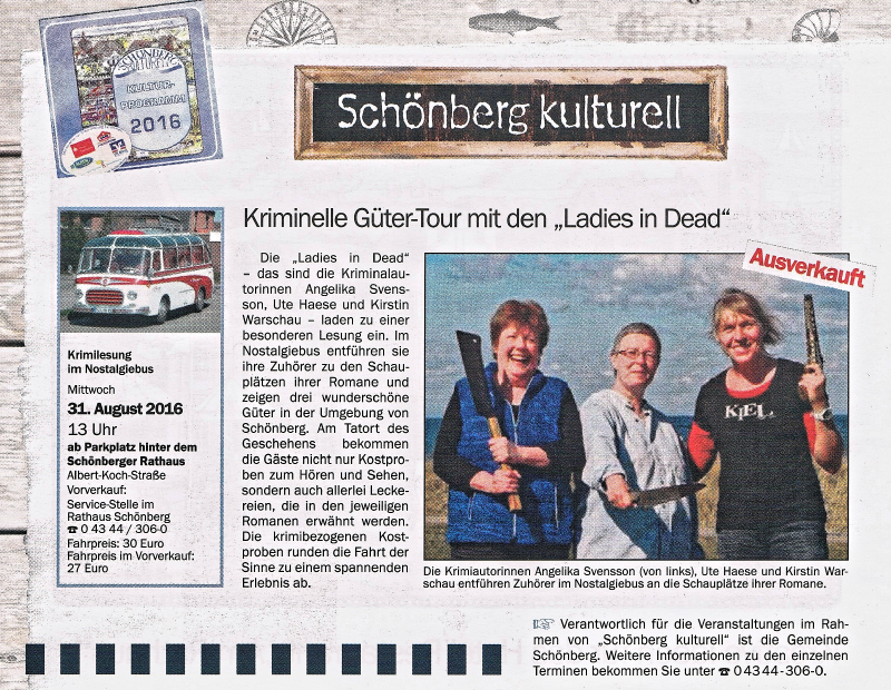In dem Veranstaltungsprospekt "Schönberg im Sommer 2016" musste kurz vor Drucklegung bei einer gewissen Ankündigung noch schnell ein "Ausverkauft"-Balken reingesetzt werden ...