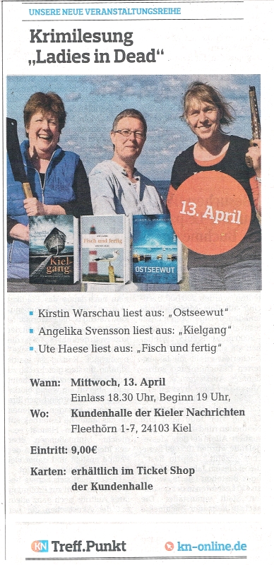 Auch der Vorverkauf für die Lesung der "Ladies in Dead" bei den Kieler Nachrichten läuft prima. Nur noch zehn Karten sind zu haben. Wer also noch mit sich ringt, eventuell zu kommen ...