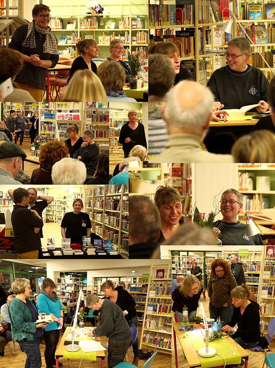 weil Angelika krankheitsbedingt leider kurzfristig ausfiel, kam die Lesung in der Stadtteilbücherei Gaarden großartig an. Der Saal war mit 60 Besuchern proppenvoll und die Stimmung bestens. Man kann es gar nicht oft genug sagen, deshalb auch an dieser Stelle noch mal das verdiente dicke Lob an die Organisatorinnen.