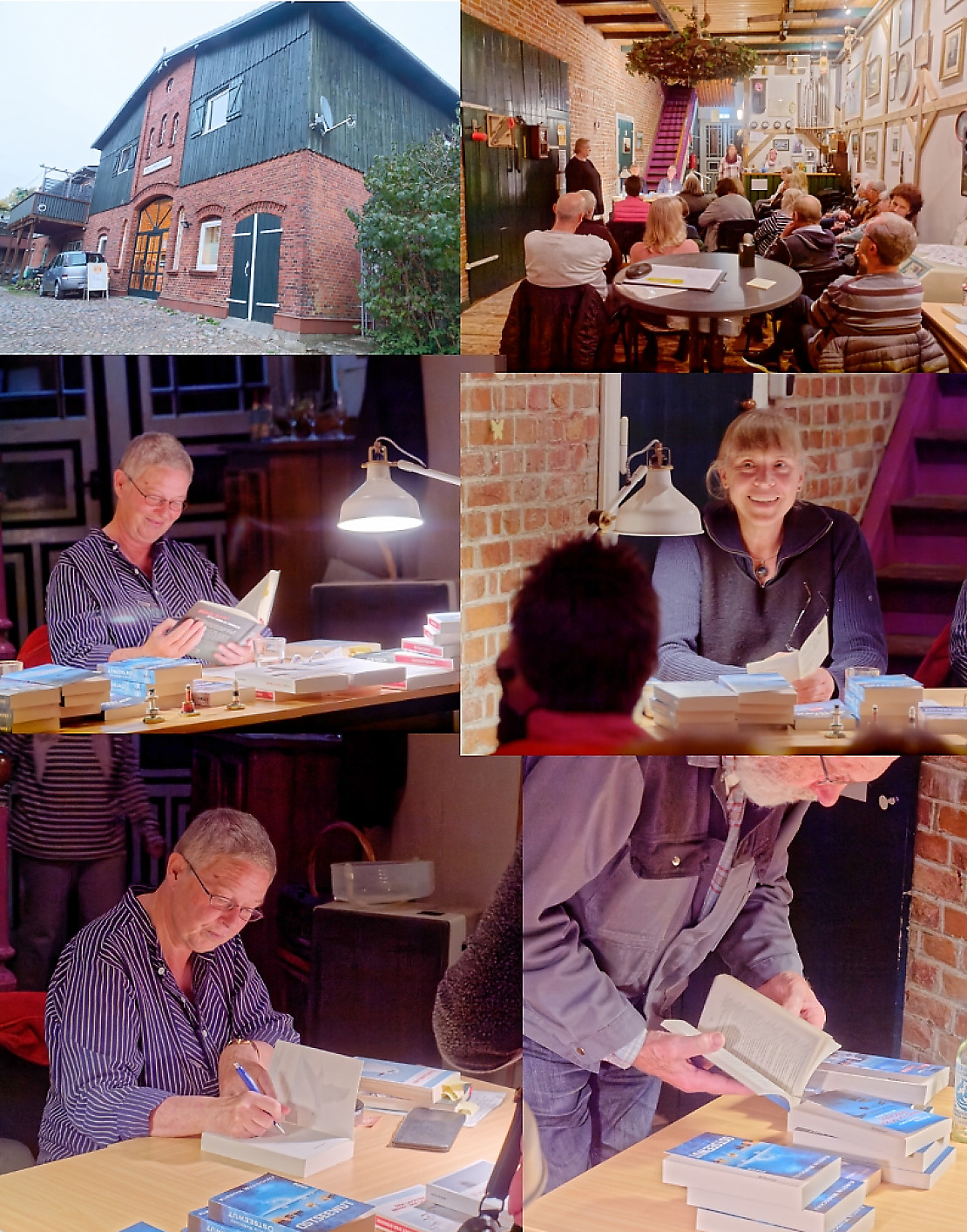 In der von Gabi Wörpel 2021 stimmungsvoll eingerichteten Elmschenhagener "Kultur-Diele" im alten Hof Wörpel herrschte genau die richtige Atmosphäre für eine "Krimi Darlings"-Lesung. Entsprechend gut kam unsere erste "Nachcorona"-Veranstaltung (?) denn auch an, was Kirstin und mich natürlich besonders freute.